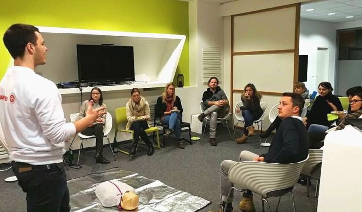 Zum Start in die Woche besuchte uns vergangenen Montag Ervin von den Johannitern, um uns einen Crash-Kurs in Sachen Erste-Hilfe zu geben. Da der letzte Erste-Hilfe Kurs bei vielen Flutlichtern schon einige Zeit zurück lag, war diese Auffrischung die perfekte Gelegenheit, um sich das richtige Vorgehen als Ersthelfer zurück ins Gedächtnis zu rufen.
